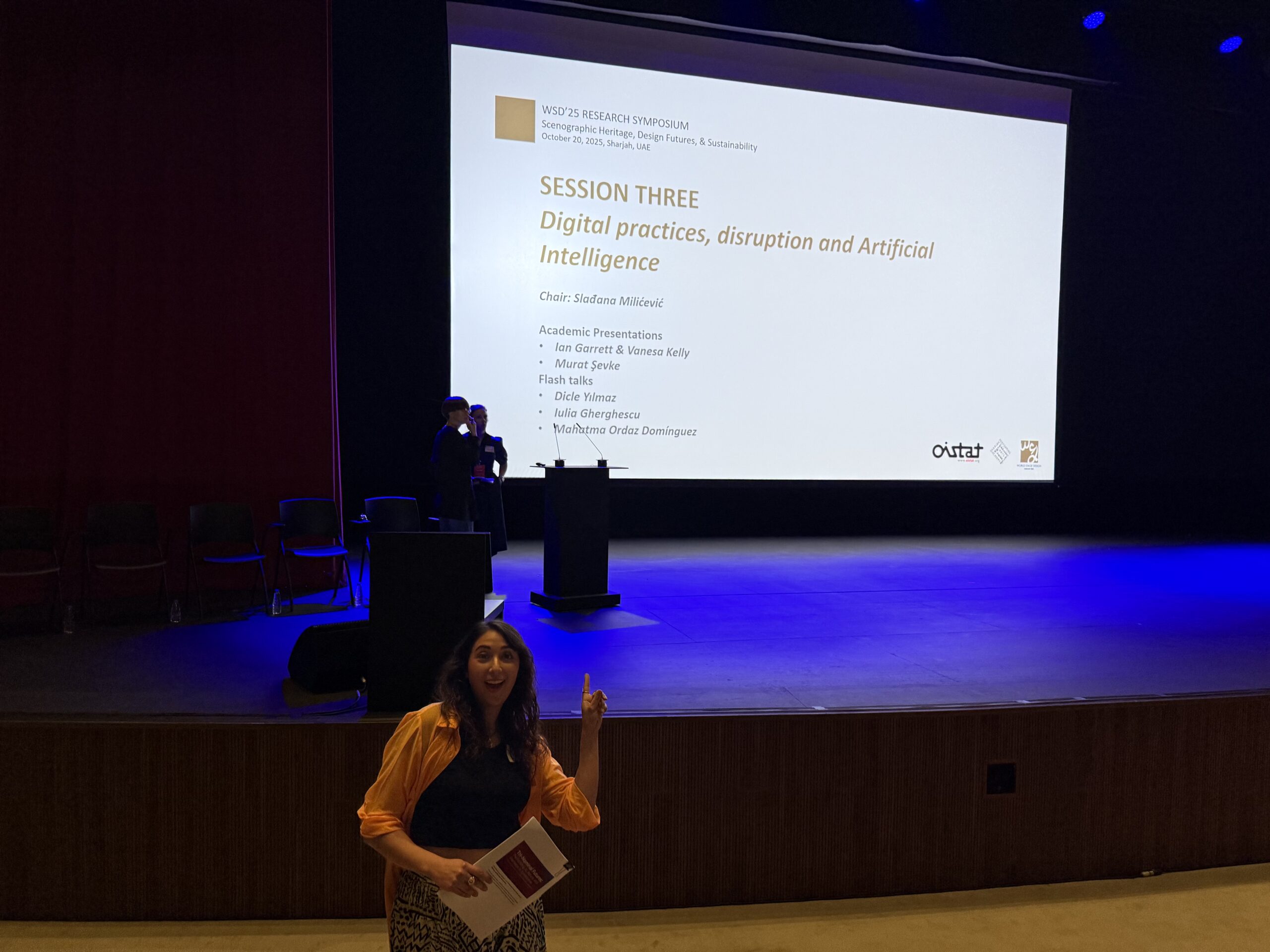 We truly do. Coming up in today’s episode, we’ll be diving into another play that is Space Cut by Lewis Hetherington and later in the episode we’ll be talking about World Stage Design 2025, a global gathering of designers and theater makers happening right now in Sharjah and we’ll be sharing our own experience presenting at the research symposium.