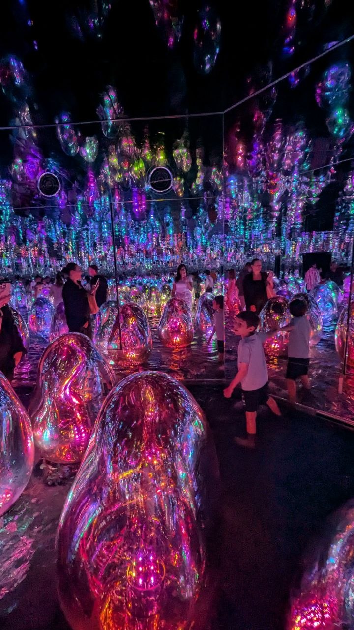 Well, there’s Morphing Continuum… in that one. There’s hundreds of floating silver balloons or they sort of exist as shapes. It’s relatively dim, they swirl around you. They’re connecting the air currents and having those so that they turn into these vortexes of these silver balloons. And so you have these tornado patterns as light and wind interact, you sort of become immersed inside the movement. There’s also, and there’s another space in which they are going through a series of laser light shows that they have hundreds of lasers intersecting into a space. They create different sort of shapes in sort of an atmospheric haze and I feel like I could have stated there for a very long time. It’s also one of those things that while they encourage you to take photographs, take videos, share things about it, so many of these things as phenomena are really hard to document in a way that you can communicate outside of experiencing it as well.