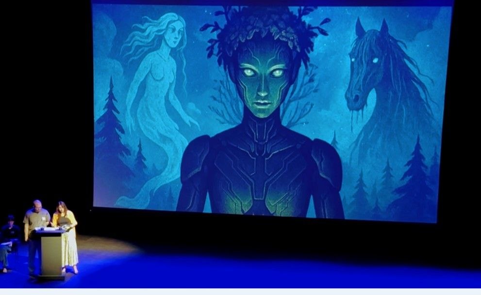 On Monday, October 20, 2025 Venue 13 Directors Ian Garrett (Toasterlab) and Vanesa Kelly (V-KIND Arts & Theatre) presented their collaborative research at the Scenofest Research Symposium: Scenographic Heritage, Design Futures, and Sustainability during World Stage Design 2025 in Sharjah. Their talk, Tri-Nominal Futures: Performing AI, Nature, and Heritage in Symbiolene, explored how artificial intelligence can be re-imagined not as a tool of extraction and optimization, but as a collaborator in ecological care.